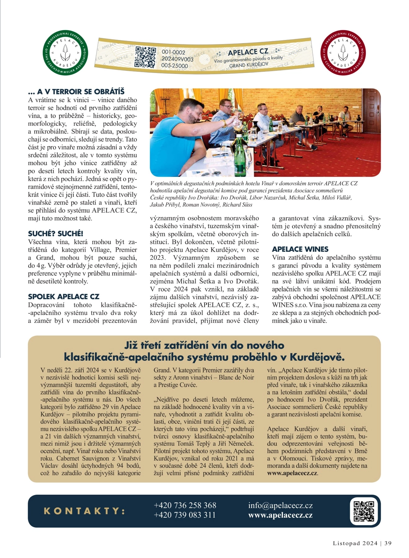 Vyhodnocení III. běhu klasifikace vín APELACE CZ/ Více info